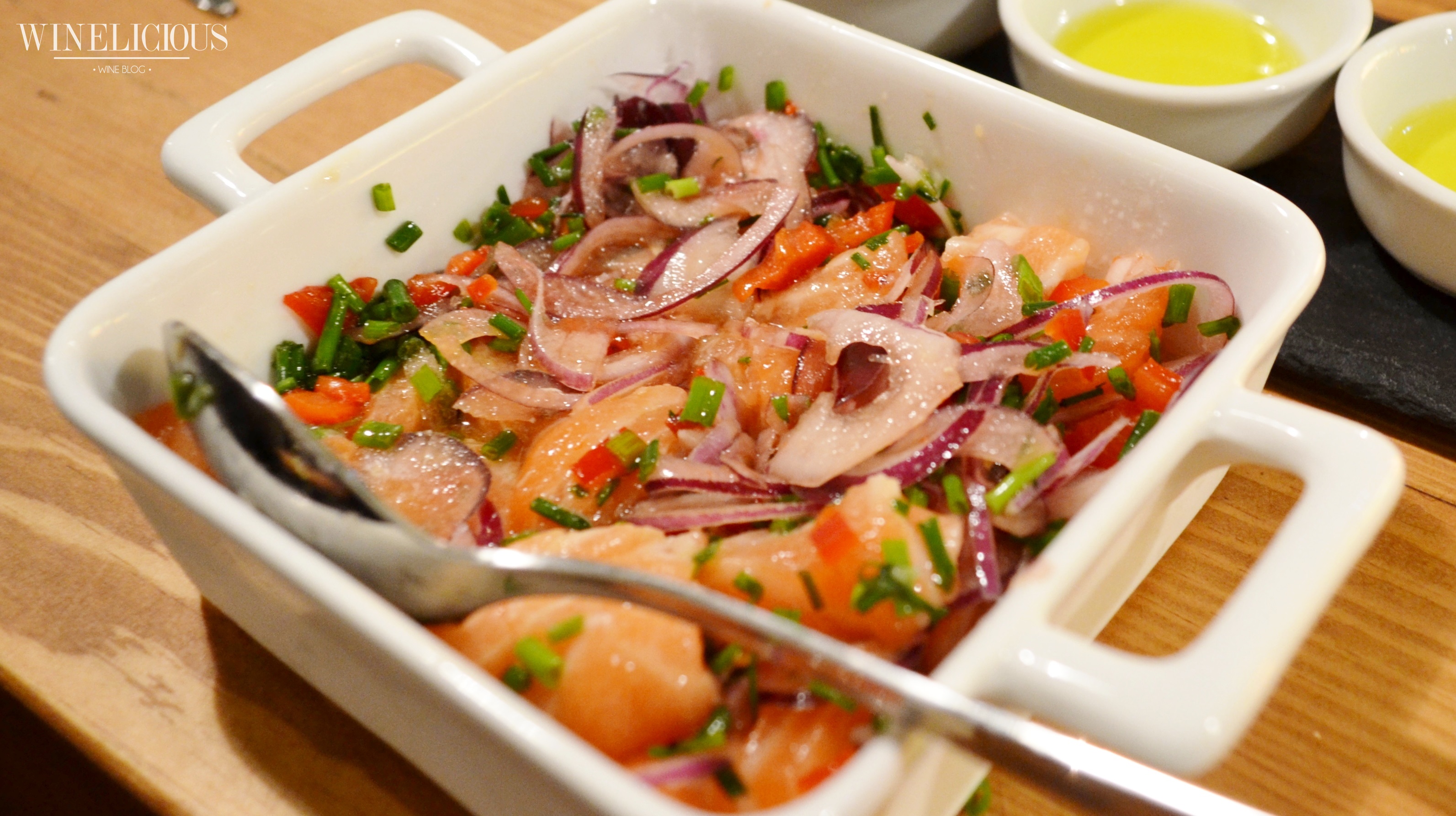 Agora, a visita à wine shop torna-se uma experiência gastronómica completa. A ementa conta com iguarias de todo mundo, não fica pela gastronomia local, é mais ambiciosa. No By the Wine visam harmonizar os vinhos daquela casa produtora com bons produtos independentemente da origem, nascendo a atmosfera cosmopolita do espaço desde a ementa. Entre as opções do que lá poderá encontrar, destacamos: pão caseiro algarvio de fabrico próprio; presunto ibérico de bellota e embutidos de Guijuelo (zona de Salamanca); diversas opções de tábuas de queijos, onde se faz presente o queijo de Azeitão; ostras do Sado; salada de mexilhão; ceviche de salmão (experimentei e aprovei!!); carpaccio e ainda sobremesas (como a famosa torta de Azeitão) para acompanhar os Moscatéis de Setúbal.