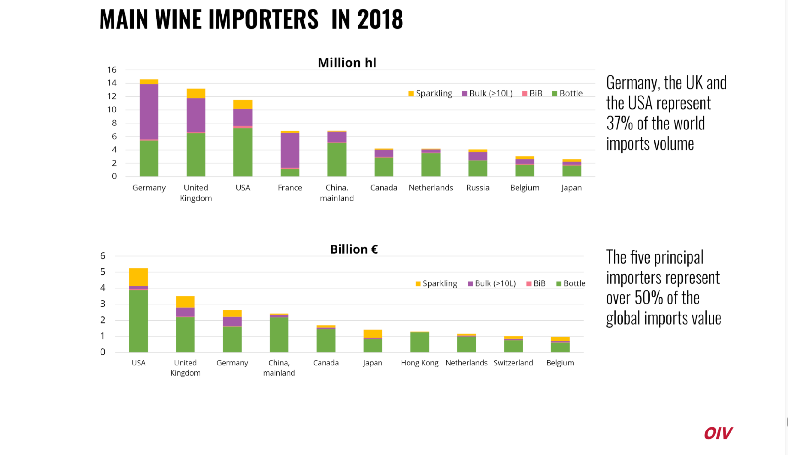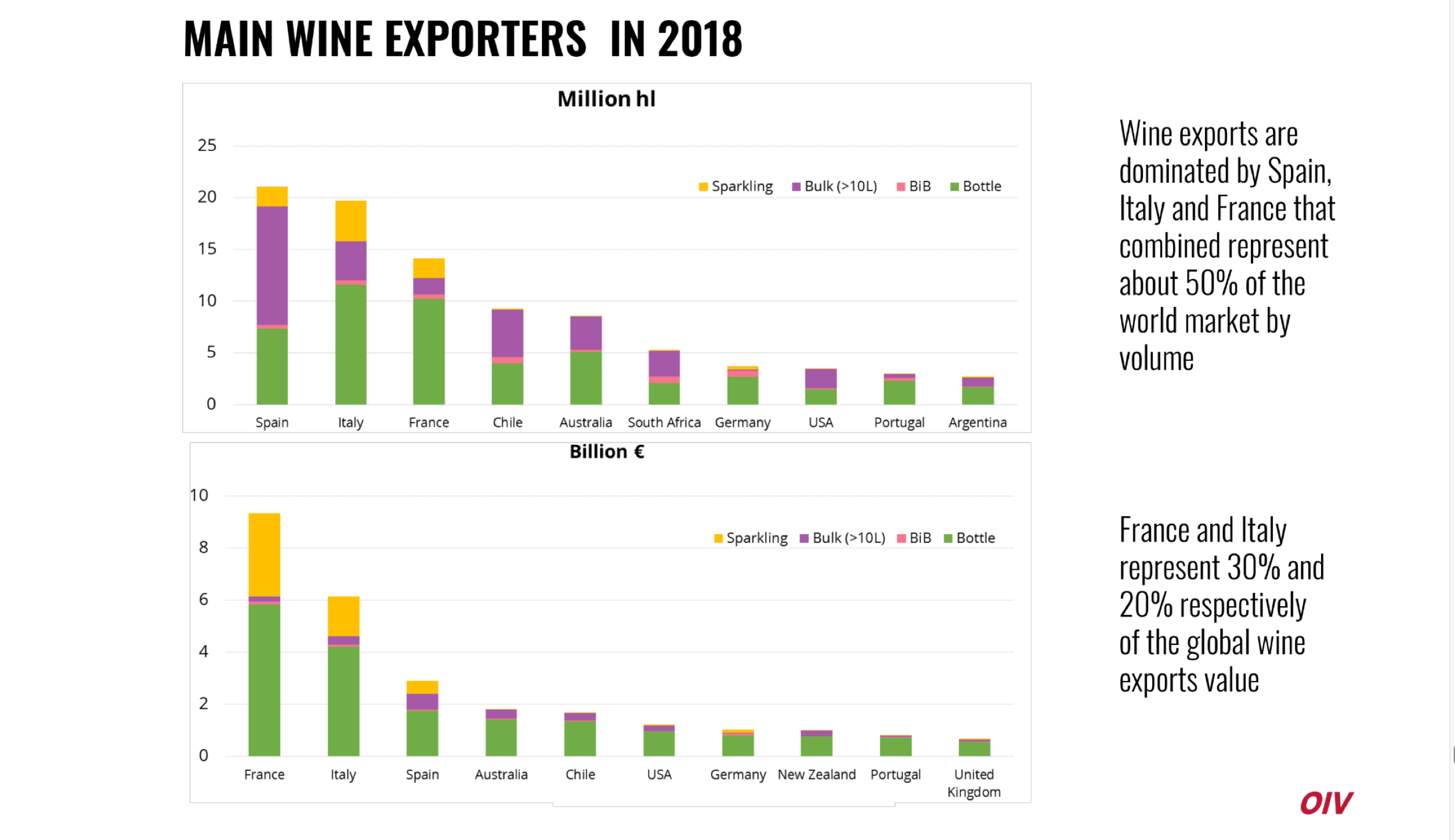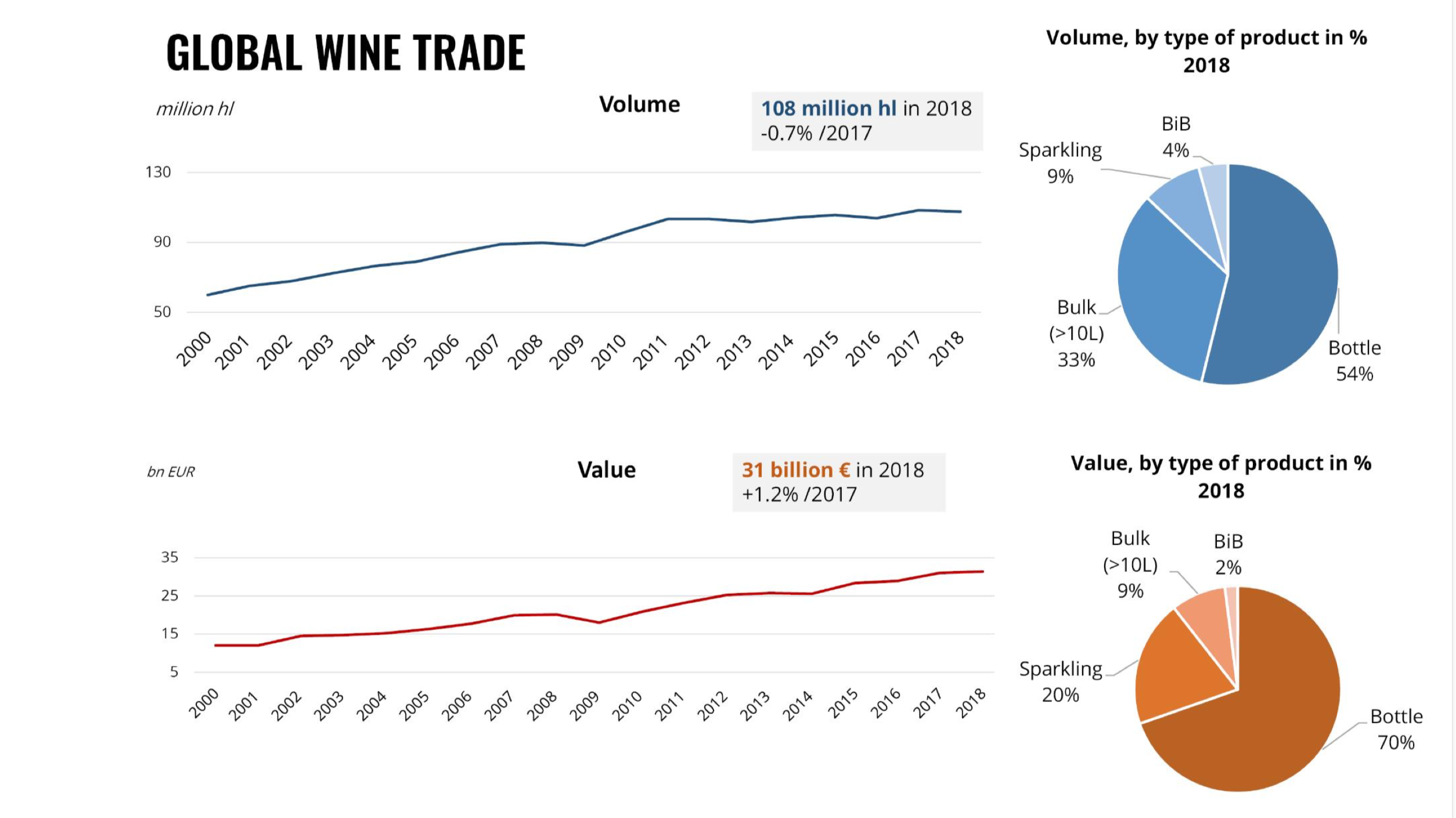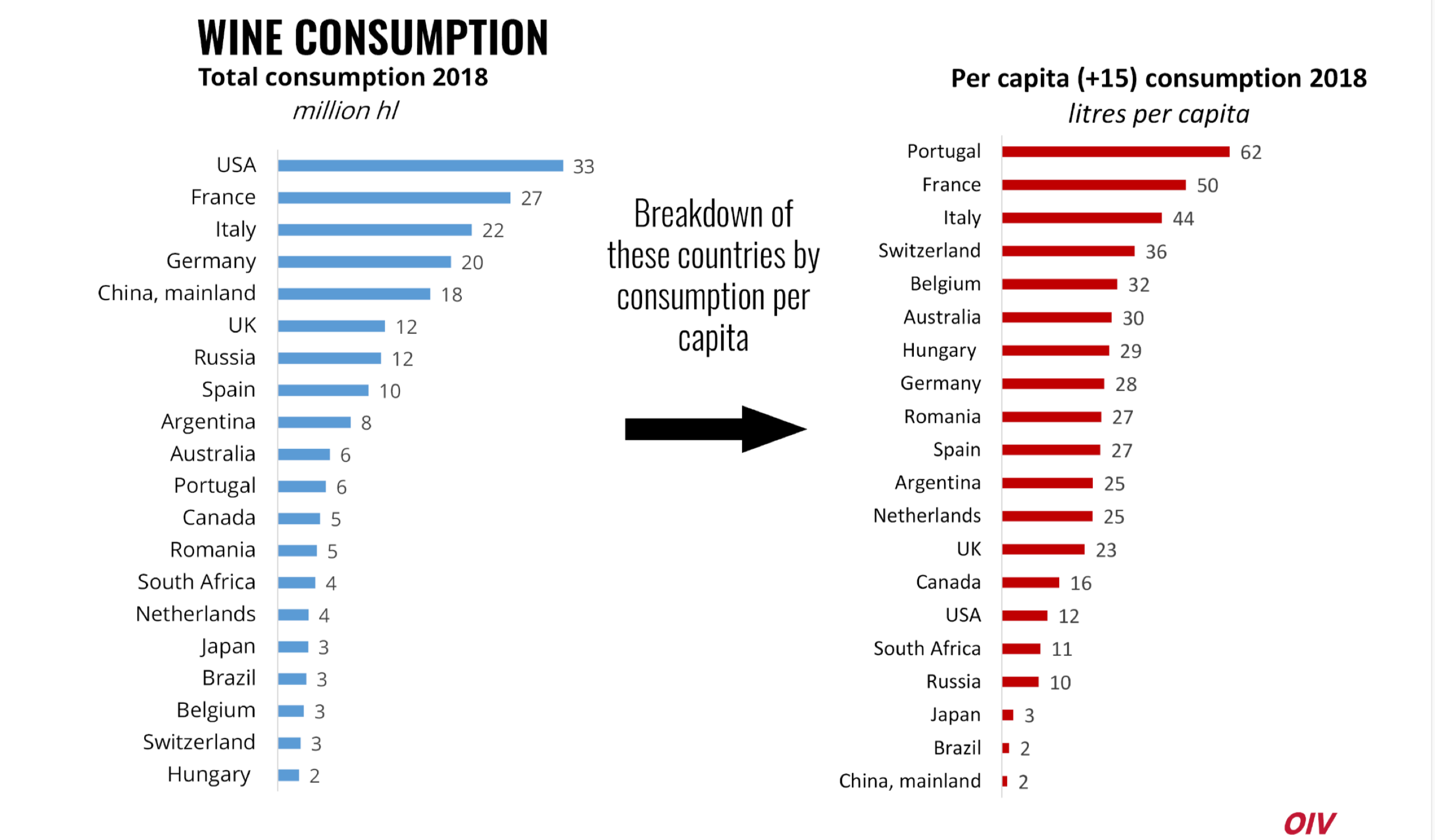 Durante o 42º Congresso Mundial da Vinha e do Vinho que teve lugar em Genebra, Suíça, o Diretor Geral da OIV, Pau Roca, apresentou uma visão geral do setor vitivinícola e apontou alguns dados do balanço internacional deste mercado durante o ano de 2018, a saber: