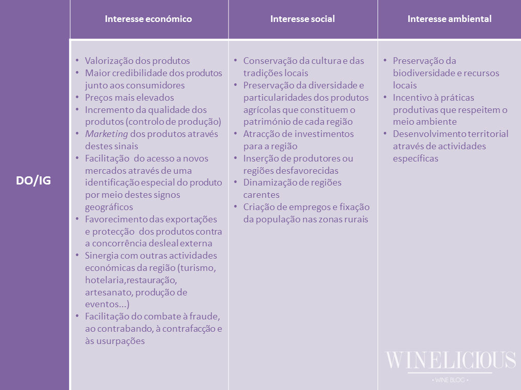 As Denominações de Origem (DO) e Indicações Geográficas (IG) são instrumentos de concorrência a serviço das empresas e que têm uma função complexa. Para além de indicar a procedência de um produto, ainda têm a função de garantir que o produto apresente determinadas características/qualidades em razão da origem (características/qualidades estas que são exigidas pelo seus respectivos cadernos de encargos ou de especificações e cuja observância é assegurada por uma entidade de controlo). De modo que estes signos geográficos são um meio de identificação dos produtos num mercado intercomunicativo, caracterizado por uma acérrima concorrência entre os produtos e por uma maior consciencialização dos consumidores para o factor qualidade.