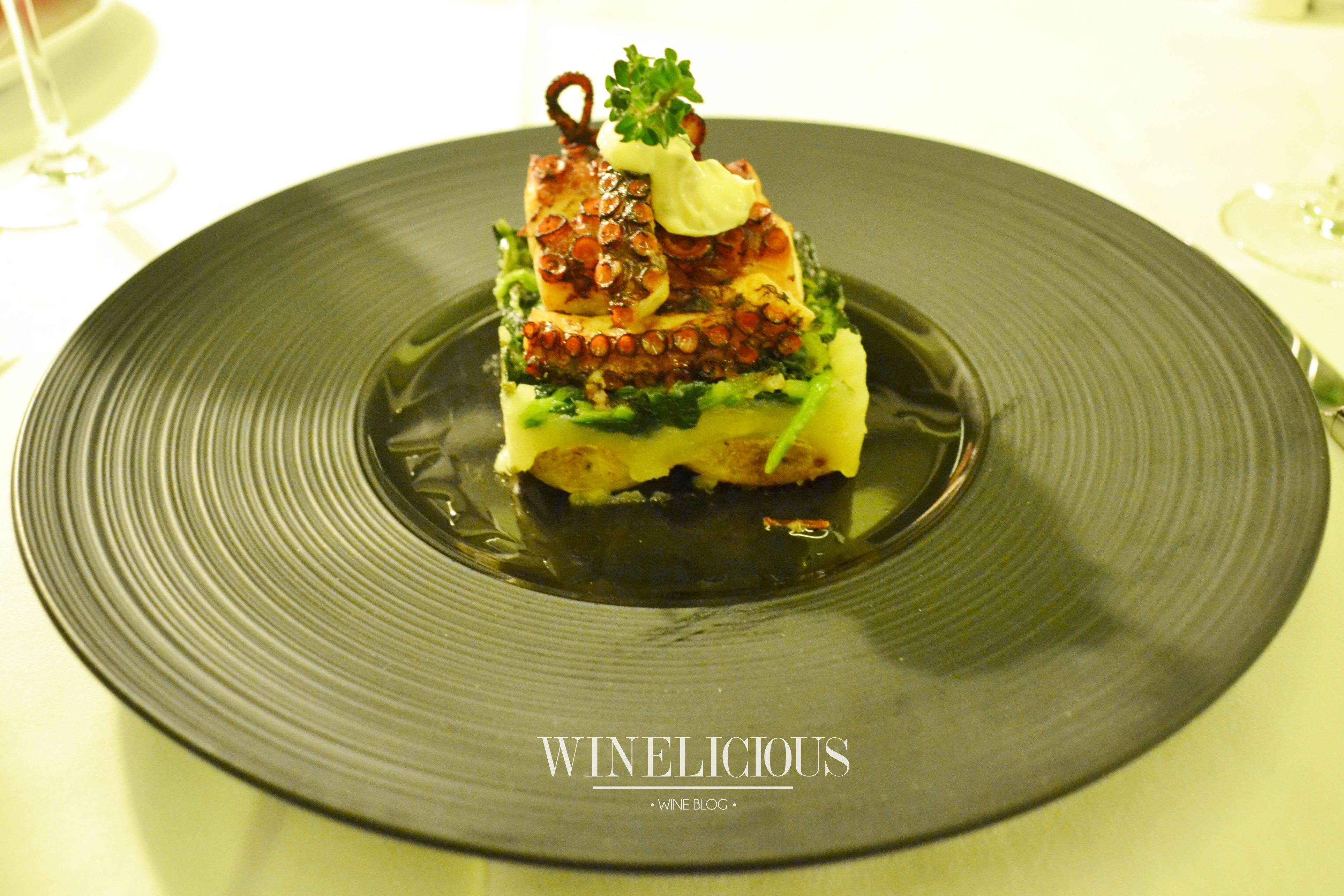 Vinhos – Pacheca Superior 2013 para acompanhar o polvo e Pacheca Tawny 30 Anos para acompanhar a sobremesa.