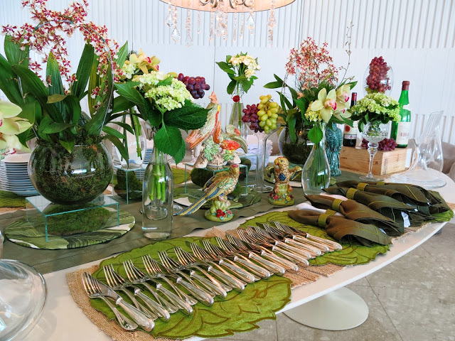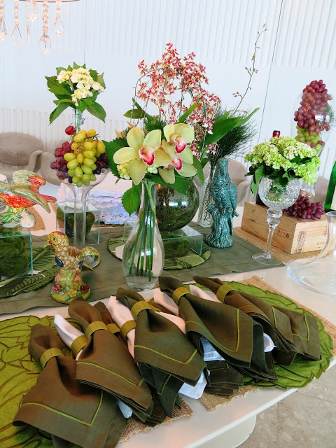 Tratando-se de um almoço exclusivamente masculino, a palheta de cores rondou os tons de verde e branco, conferindo um ar elegante.